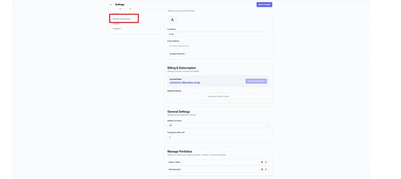 Where to find Billing & Subscription