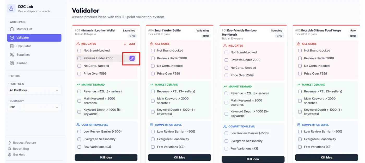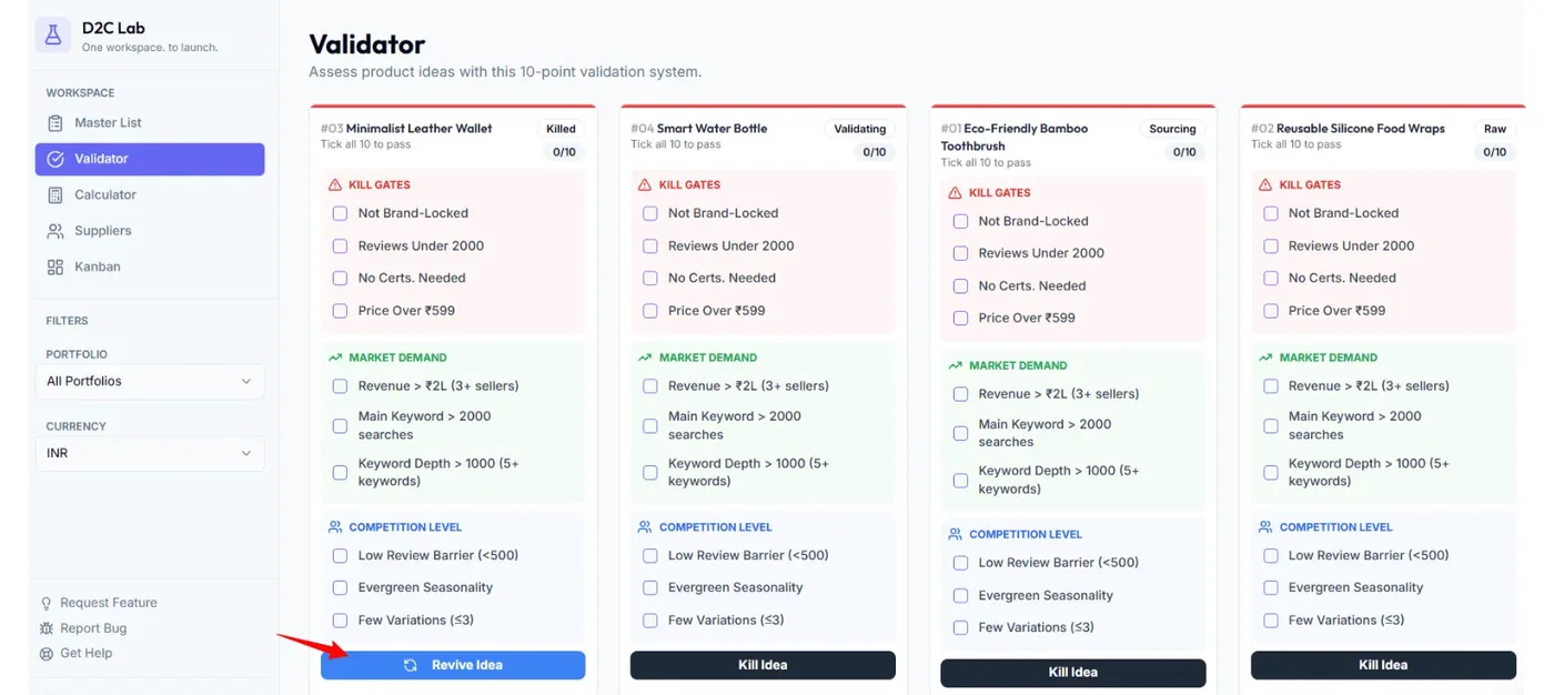 Tip: Use kill/revive confidently — it’s how you keep your product pipeline focused.