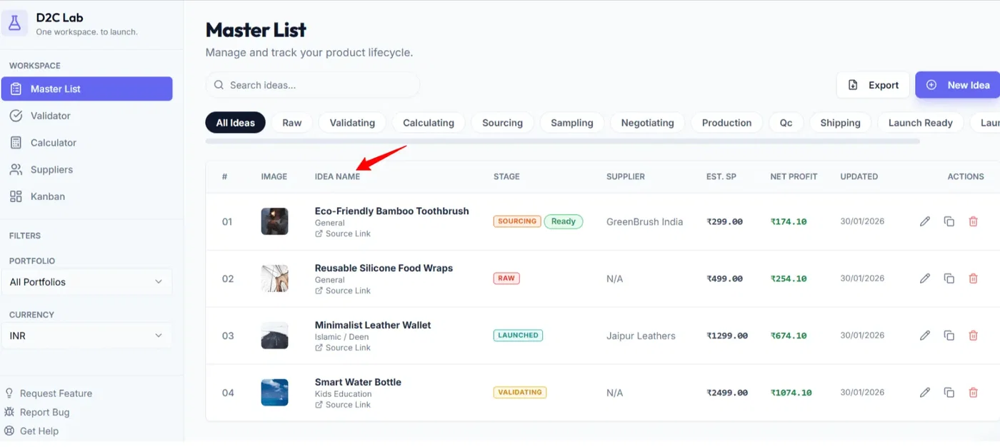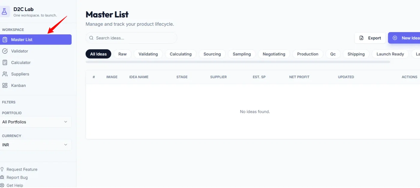 Go to Master List (this is your command center for all product ideas).