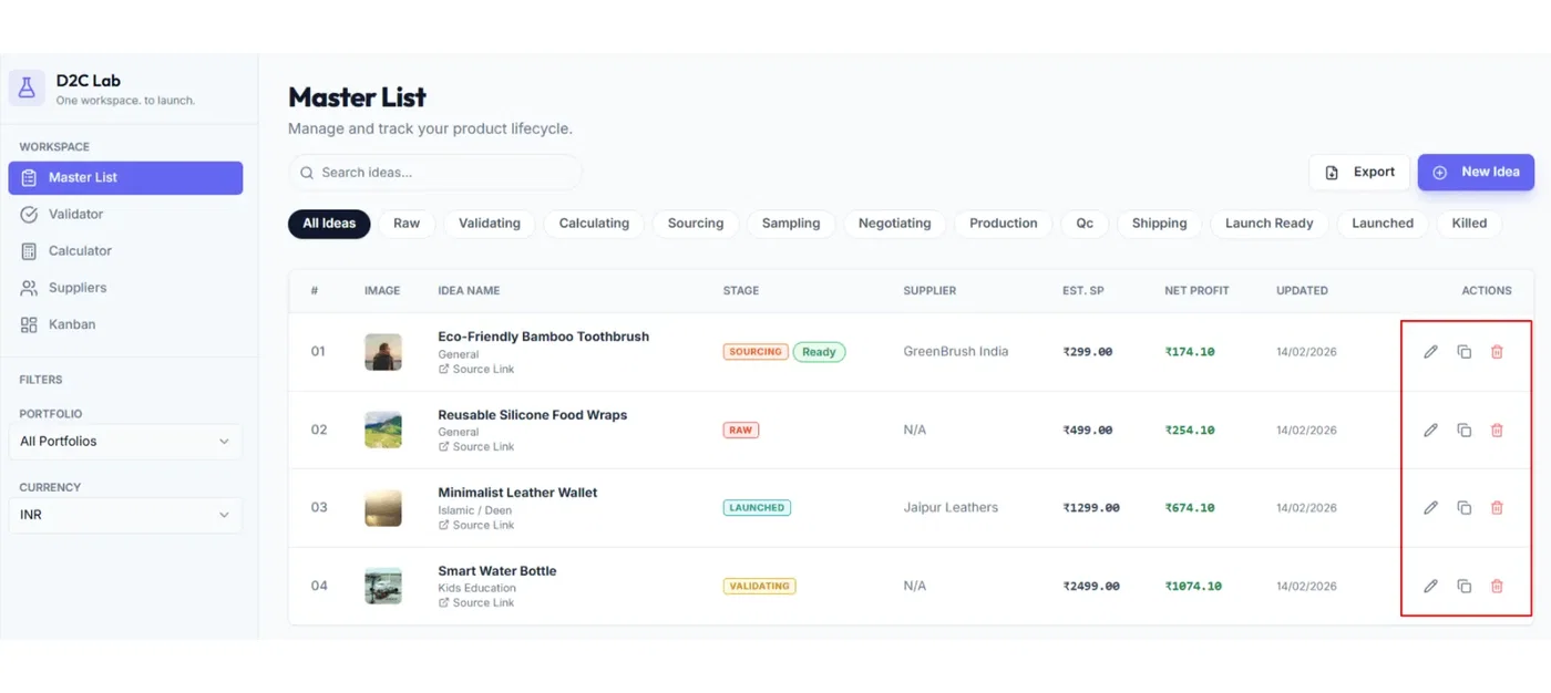 Go to Master List. For each idea, you’ll see quick actions (usually on the right side of the row/card).